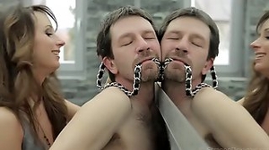 Ladies have fun with poor guy